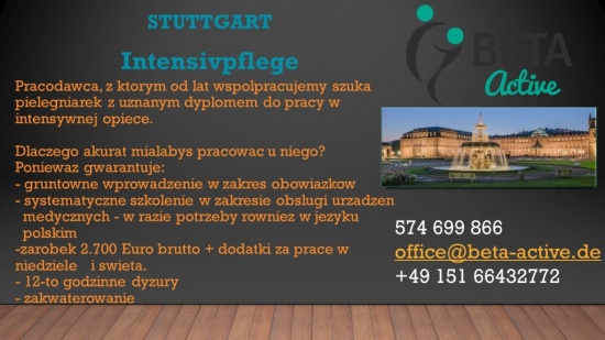 Pracodawca, z którym od lat współpracujemy szuka pielęgniarek z uznanym dyplomem do pracy w intensywnej opiece.